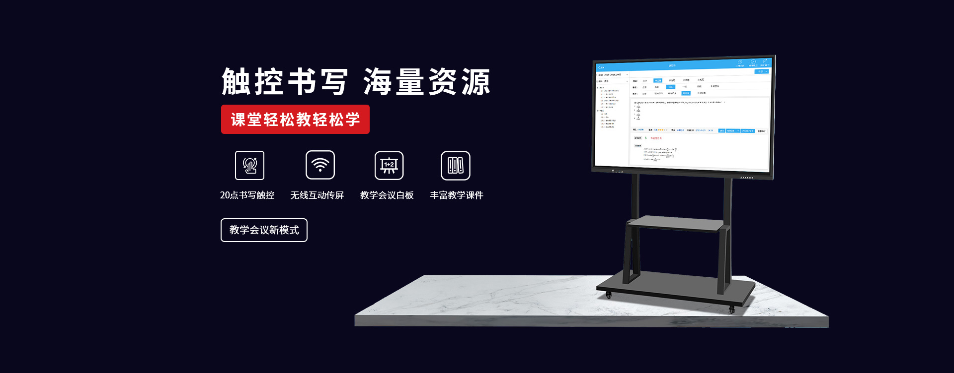 〔教育智慧黑板〕 是新一代教學顯示設(shè)備,具有高清顯示、高精度觸摸操作應(yīng)用,黑板書寫教學功能與一身;內(nèi)置安卓、windows系統(tǒng),可滿足教學不同的應(yīng)用軟件使用;純平面書寫黑板,適應(yīng)粉筆,無塵粉筆、水性粉筆書寫,適合不同環(huán)境應(yīng)用;觸摸切換書寫黑板與屏幕顯示,可讓老師快速進行教學應(yīng)用切換;純平面外觀,解決傳統(tǒng)推拉黑板的笨重,復(fù)雜的結(jié)構(gòu)特點,大大提升了教師授課的體驗感和演示效果。